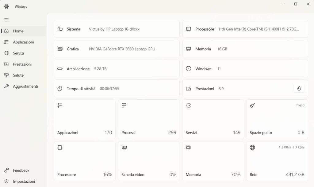 Se i grandi colossi non offrono questa trasparenza, ci pensa spesso la passione di singoli sviluppatori. In questo caso, il salvavita si chiama Wintoys. Credo che vince a mani basse il titolo di uno dei migliori programmi per Windows 11, e lo dico con sincero apprezzamento per la semplicità che riesce a restituire all’esperienza utente. Raggruppa in un’unica interfaccia pulita tutte le opzioni nascoste tra i meandri di Impostazioni e Pannello di controllo, rendendo tutto chiaro, ordinato e facilmente fruibile. C’è bisogno di avere 2 voci distinte per le impostazioni di sistema?